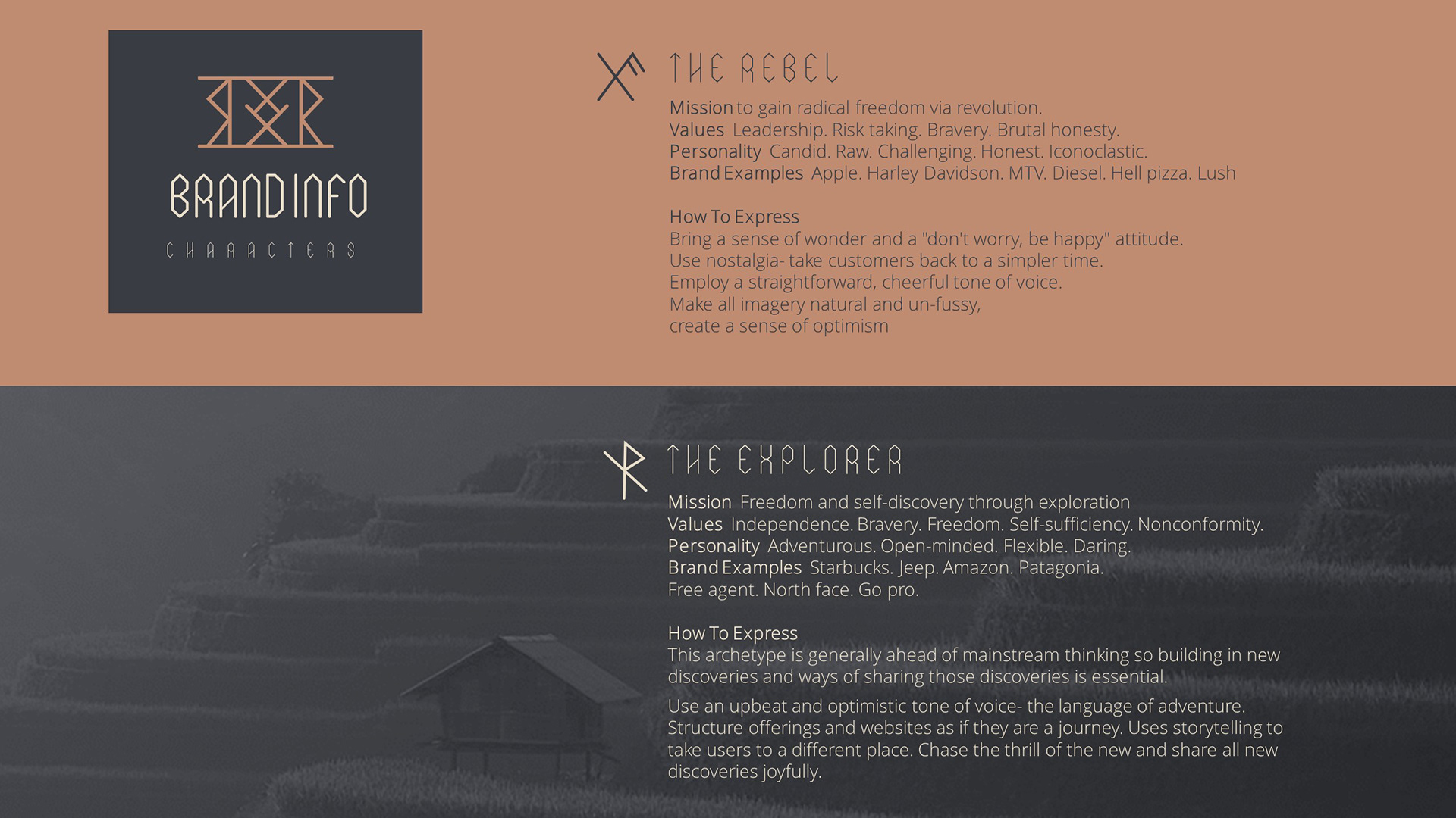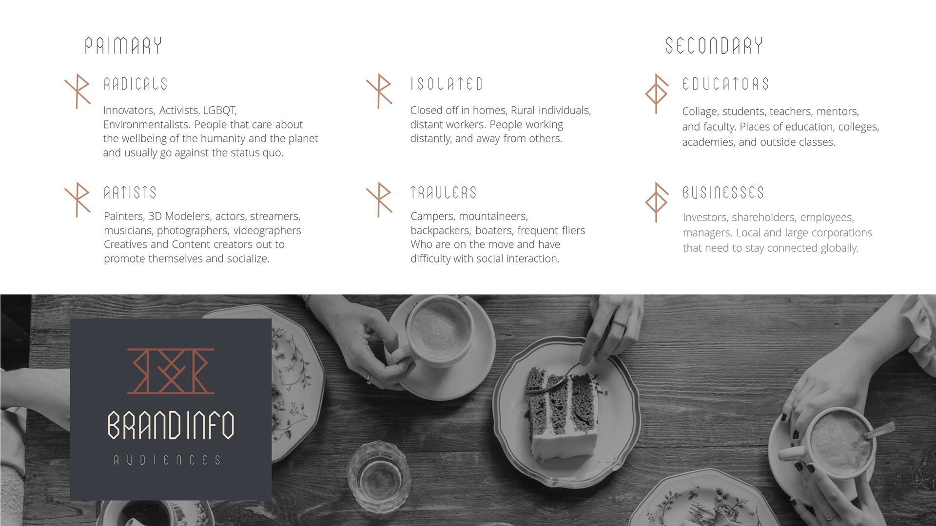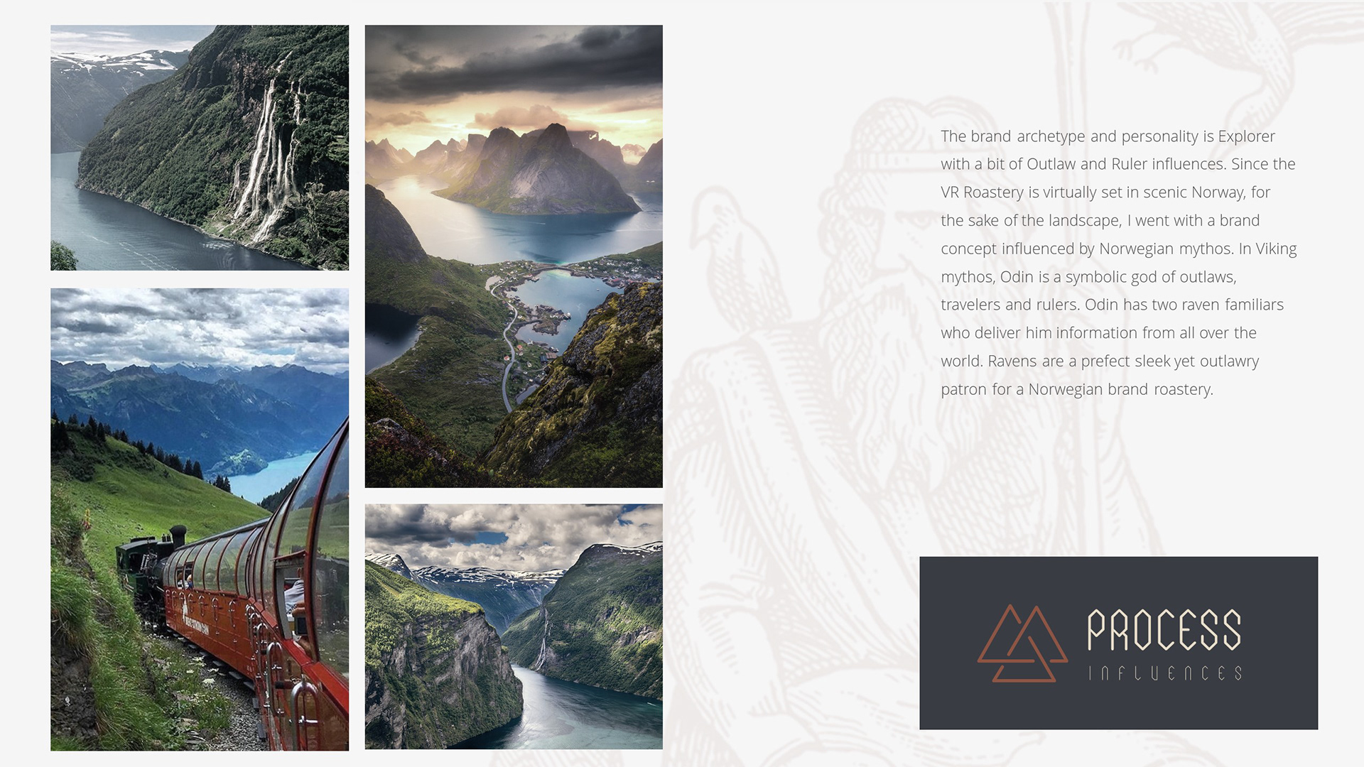 Immersive field study, data collection and research on VR Worlds helped me come up with a visual vernacular for the campaigns design. The coffee house would be virtually located in a Norway, so the projects design was influenced by the mountain scenery and historical Vikings. This project is also influenced by the VRWorld designs trends, modern and simplistic. Mixing elements of Norsemen runes and modern trends resulted in a clean geometric design. The branding archetype leans largely on the Explorer, also has heavy undertones influence by the Rebel and a bit of the Ruler.